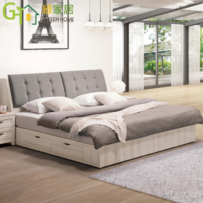 【綠家居】華倫 現代5尺亞麻布雙人四抽床台組合(床頭箱+四抽床底+不含床墊