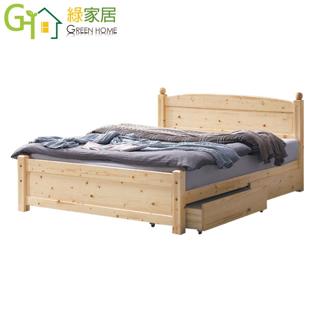 【綠家居】莫巴 現代5尺實木雙人床台(含二個抽屜抽格+不含床墊)