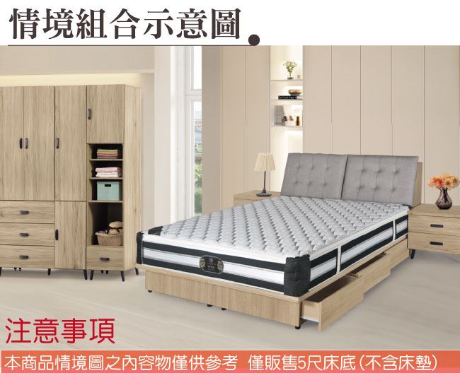 【綠家居】查摩 橡木紋5尺雙人六抽床底(不含床墊)