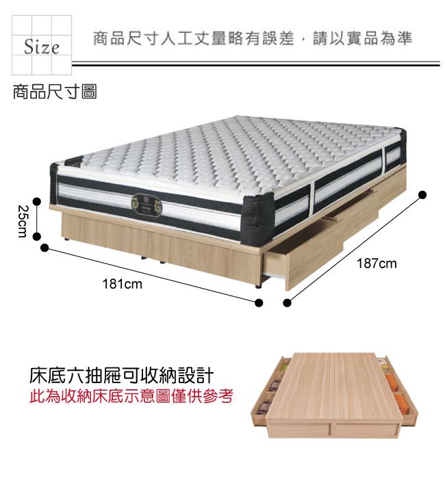 材質 | ◆產品名稱: 【綠家居】查摩 橡木紋6尺雙人加大六抽床底(不含床墊) 床底尺寸:(寬)181x(深)187高)25分 ◆材質: 材質:防蛀木心板+六分木床板+防刮耐磨腳座 噴漆:防潮耐磨噴漆處理