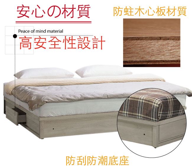 材質 | ◆產品名稱: 【綠家居】歐倫勒 現代6尺雙人加大三抽床底(不含床墊) 產品尺寸: 床底尺寸:(寬)182x(深)188x(高)26/公分 ◆材質: 材質:防蛀木心板+六分木床板+防潮耐磨底座 塗漆:優利坦全包式耐磨噴漆處理