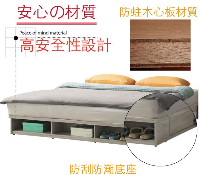 商品介紹 | 【綠家居】歐倫勒 現代6*7尺雙人加大三抽床底(不含床墊) 橡木紋色系+現代簡約風格+安心材質製造,整體採用防蛀木心板+六分木床板+防潮耐磨底座等安心材質製造,外層採用優利坦全包式耐磨噴漆處理搭配採用單邊開合收納三抽屜+床尾底部開放式置物層格等便利設計,全由專人配送到家,專業安心服務,替你省下更多時間! 【商品特色】 橡木紋色系+現代簡約風格+安心材質製造,使用放心+搭配居家更便利 採用防蛀木心板+六分木床板+防潮耐磨底座等安心材質製造 採用單邊開合收納三抽屜+床尾底部開放式置物層格等便利設計 此商品不需要DIY組立,此商品為組立後之成品 品質保證、專業設計、貼心服務 全由專人配送到家,專業安心服務,替您省下更多時間 |