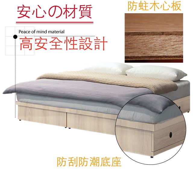 材質 | ◆產品名稱: 【綠家居】卡西斯 6尺雙人加大三抽床底(不含床墊) 床底尺寸:(寬)182x(深)188(高)28分 ◆材質: 材質:防蛀木心板+六分木床板+防潮耐磨腳座 噴漆:防潮耐磨噴漆處理