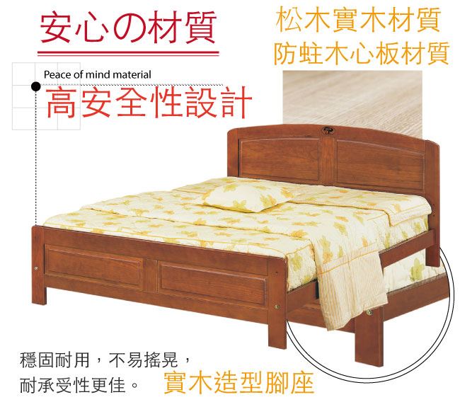 商品 介紹 | 【綠家居】邁肯西 歐風5尺雙人實木床台(不含床墊) 柚木紋色系+現代簡約風格+安心材質製造,整體採用松木實木+四分木床板等安心材質製造,外層採用優利坦全包式耐磨噴漆處理,全由專人配送到家,專業安心服務,替你省下更多時間! 【商品特色】 柚木紋色系+現代簡約風格+安心材質製造,使用放心+搭配居家更便利 採用松木實木+四分木床板等安心材質製造 此商品不需要DIY組立,此商品為組立後之成品 品質保證、專業設計、貼心服務 全由專人配送到家,專業安心服務,替您省下更多時間 |