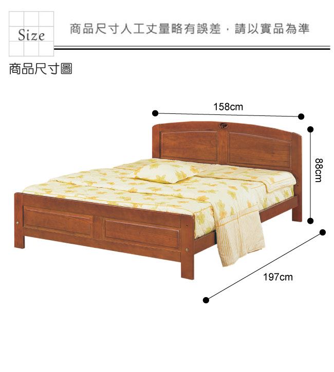 材質 | ◆產品名稱: 【綠家居】邁肯西 歐風5尺雙人實木床台(不含床墊) 產品尺寸: 尺寸:(寬)158(深)198x(高)86/公分 ◆材質: 材質:松木實木+四分木床板 塗漆:優利坦全包式耐磨噴漆處理