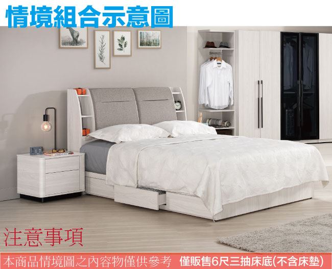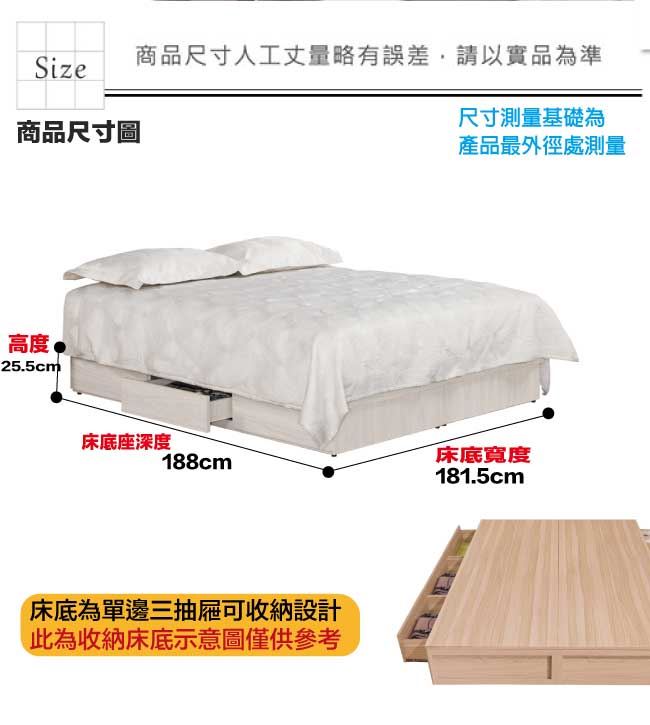 【綠家居】摩克6尺雙人加大單邊三抽屜床底(不含床墊)