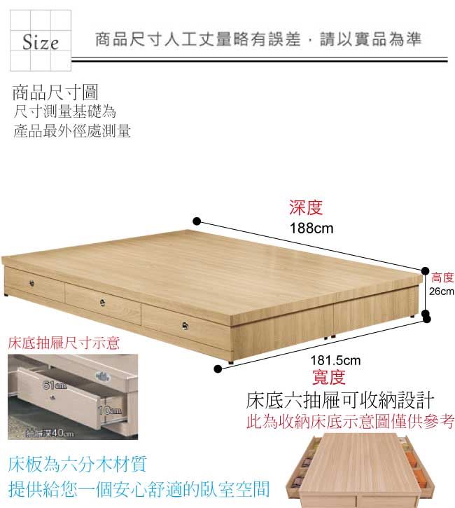 【綠家居】艾西可6尺雙人加大六抽床底(三色可選)