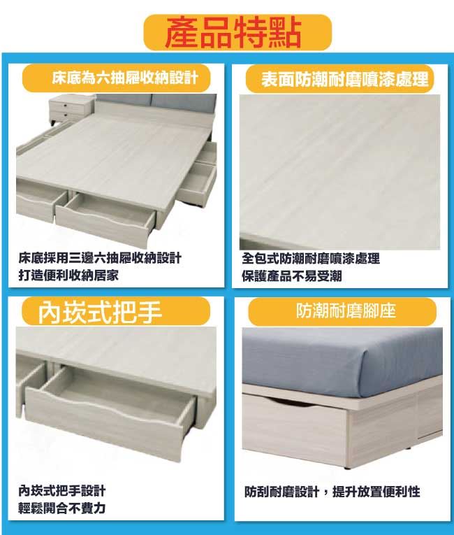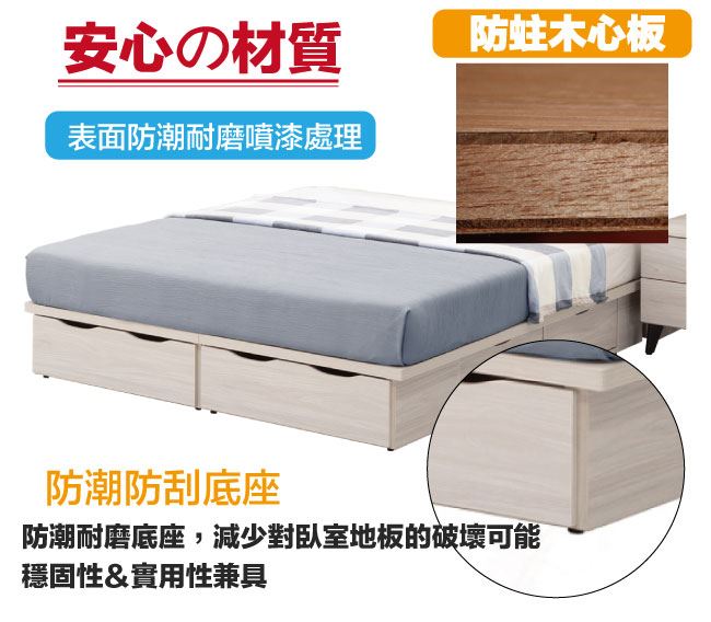 材質 | ◆產品名稱:【綠家居】布金5尺雙人六抽床底(不含床底+不含床墊) 床底尺寸:(寬)151.5x(深)188(高)27/公分 ◆材質: 材質:防蛀木心板+六分木床板+防潮耐磨腳座 噴漆:防潮耐磨噴漆處理