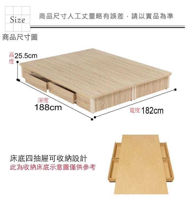 【綠家居】森葳6尺雙人加大四抽床底(四色可選)