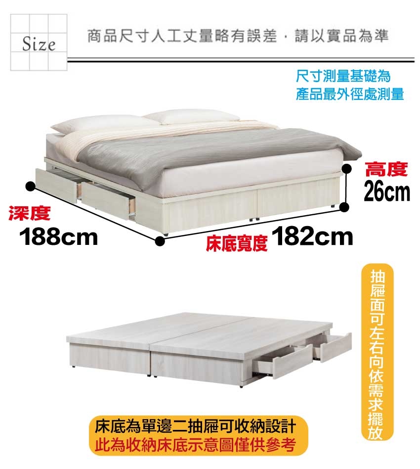 床底尺寸:(寬)182x(深)188x(高)26/公分