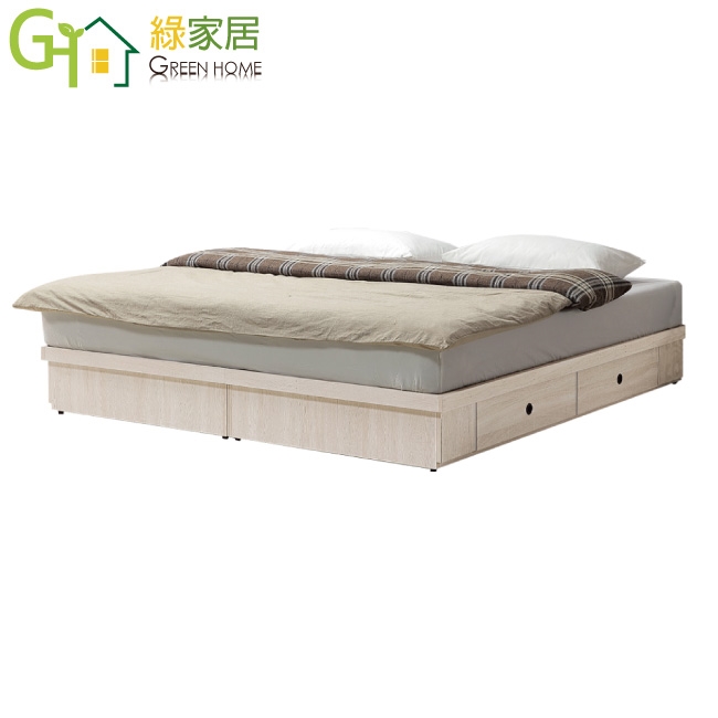 ★偏遠地區需額外加收運費,下標請先問與答詢問★ ★下訂前注意 由於商品流動較快,下訂前請先詢問是否有貨在下訂喔~★ 【綠家居】艾蘿6尺雙人加大四抽床底(不含床墊) 淺橡木紋色系+安心材質製造,使用放心+搭配居家更便利,採用防蛀木心板+六分木床板+防潮耐磨底座等安心材質製造 ,外層採用防潮耐磨噴漆處理搭配床底採用雙邊開合四抽屜收納空間設計,全由專人配送到家,專業安心服務,替你省下更多時間!