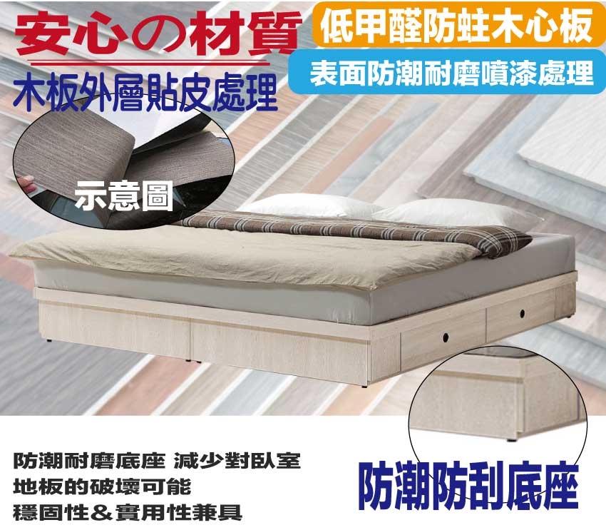 材質:防蛀木心板+六分木床板+防潮耐磨底座