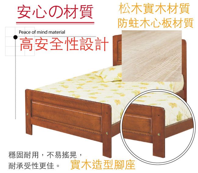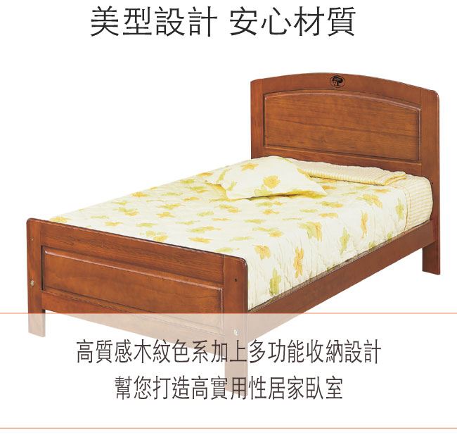 商品 介紹 | 【綠家居】邁肯西 歐風3.5尺單人實木床台(不含床墊) 柚木紋色系+現代簡約風格+安心材質製造,整體採用松木實木+四分木床板等安心材質製造,外層採用優利坦全包式耐磨噴漆處理,全由專人配送到家,專業安心服務,替你省下更多時間! 【商品特色】 柚木紋色系+現代簡約風格+安心材質製造,使用放心+搭配居家更便利 採用松木實木+四分木床板等安心材質製造 此商品不需要DIY組立,此商品為組立後之成品 品質保證、專業設計、貼心服務 全由專人配送到家,專業安心服務,替您省下更多時間 |