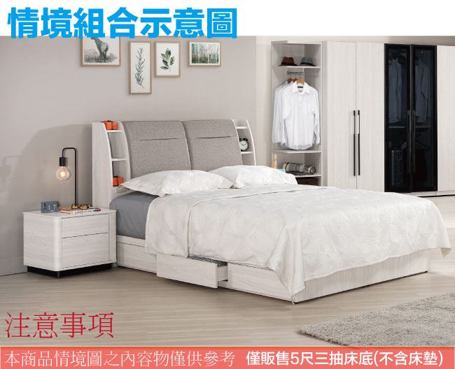【綠家居】摩克5尺雙人單邊三抽屜床底(不含床墊)