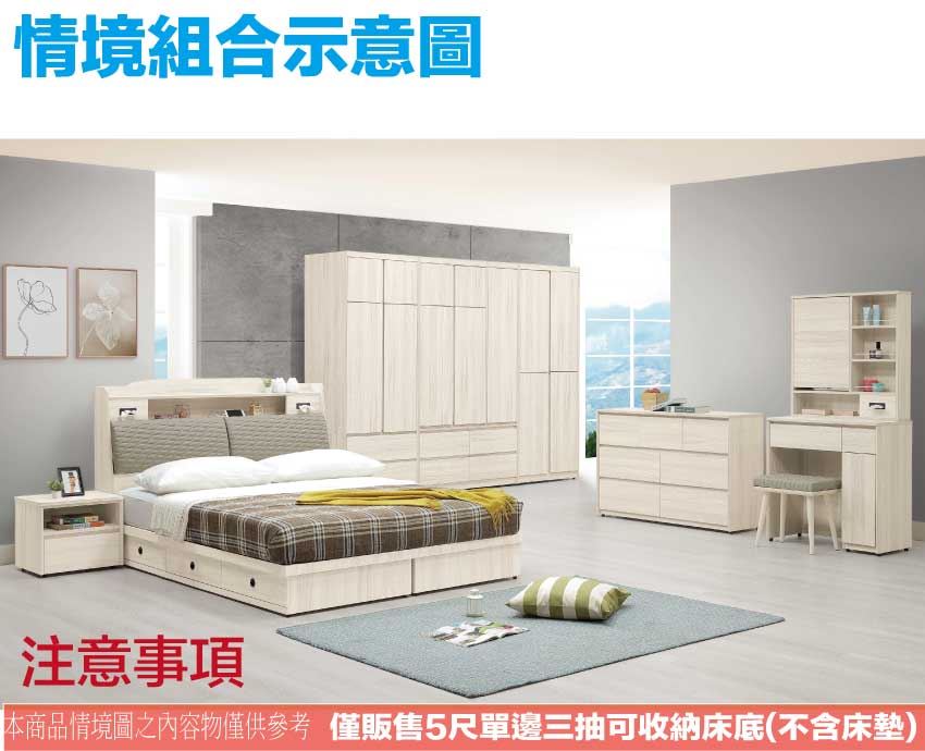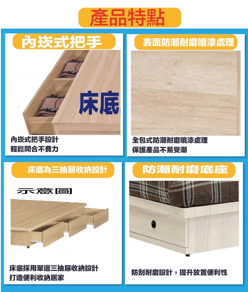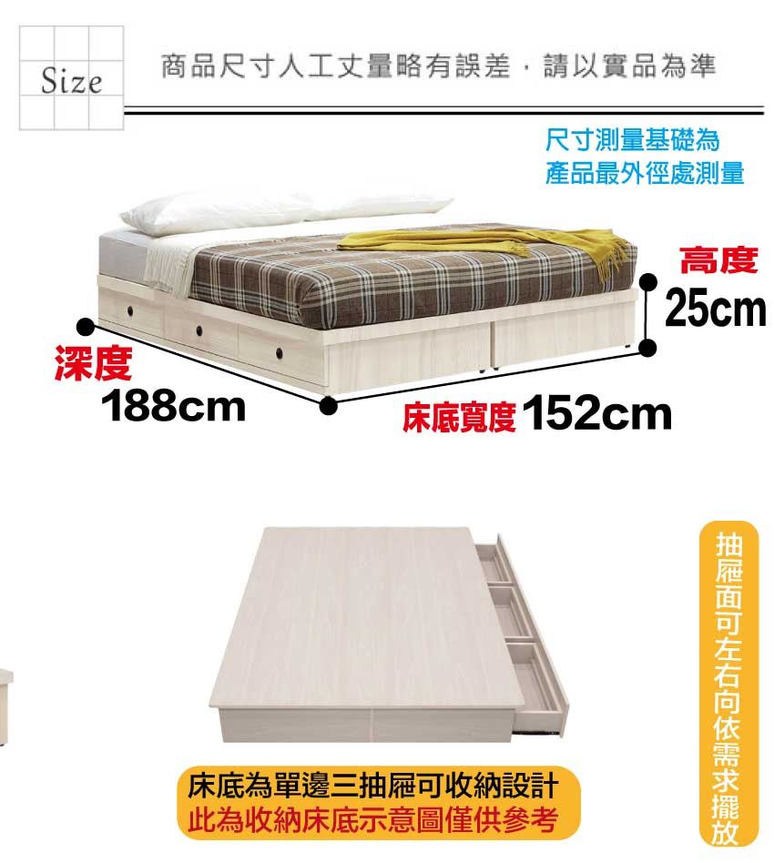 - ◆產品名稱:【綠家居】奧斯巴5尺雙人三抽床底(不含床墊)
