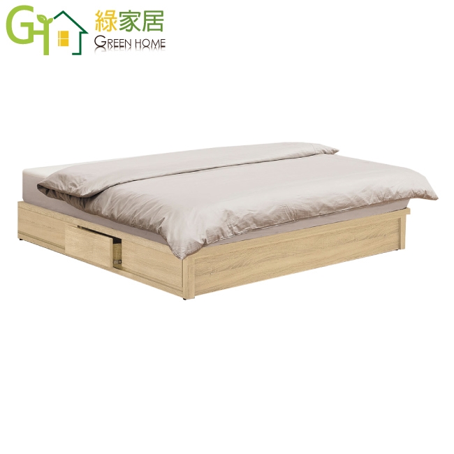 ★偏遠地區需額外加收運費,下標請先問與答詢問★ ★下訂前注意 由於商品流動較快,下訂前請先詢問是否有貨在下訂喔~★ 【綠家居】羅美5尺雙人三抽床底(不含床墊) 橡木紋色系+現代簡約風格+安心材質製造,整體採用防蛀木心板+六分木床板+防潮耐磨底座(可調高低水平)等安心材質製造,產品外層採用防潮耐磨噴漆處理搭配採用床底座單邊開合三抽屜收納空間設計,全由專人配送到家,專業安心服務,替你省下更多時間!