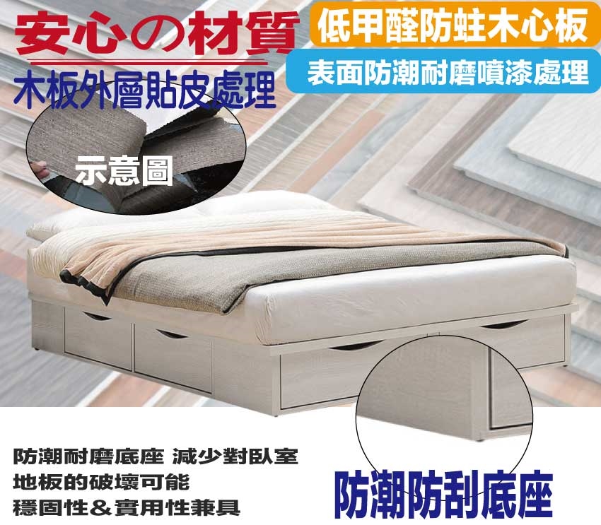 採用防蛀木心板+六分木床板+防潮耐磨底座等安心材質製造
