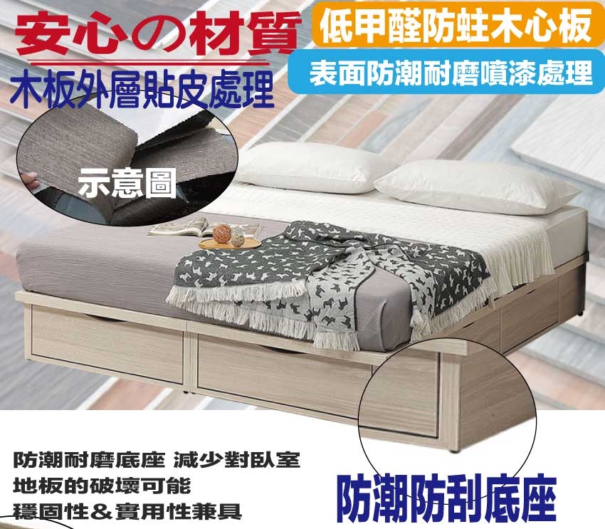 採用防蛀木心板+六分木床板+防潮耐磨底座等安心材質製造