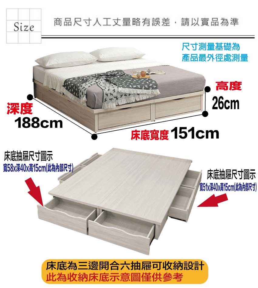 - ◆產品名稱:【綠家居】艾悠5尺雙人六抽床底座(不含床墊)