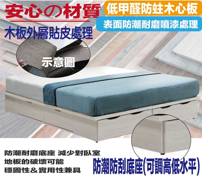 材質:防蛀木心板+六分木床板+防潮耐磨底座