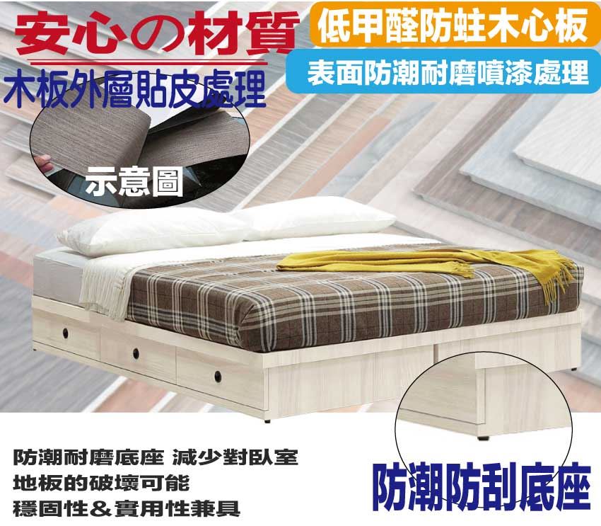 材質:防蛀木心板+六分木床板+防潮耐磨底座