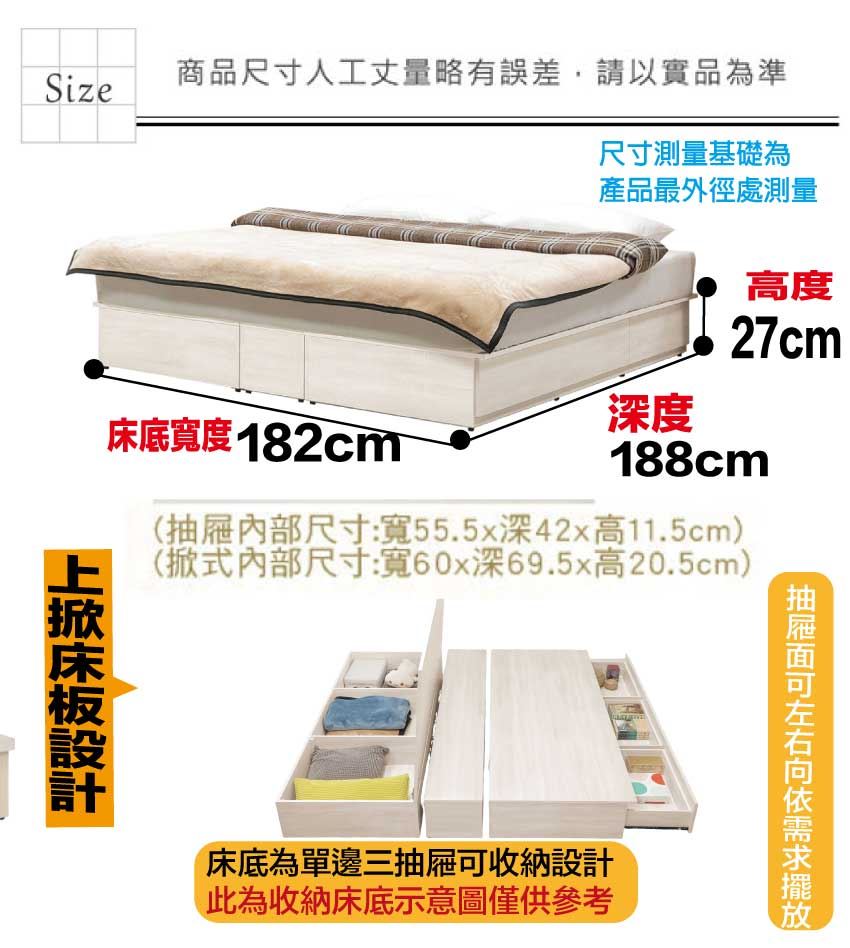- ◆產品名稱:【綠家居】菲可6尺雙人加大三抽可掀床底座(不含床墊)