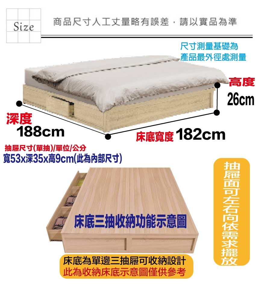 - ◆產品名稱:【綠家居】羅美6尺雙人加大三抽床底(不含床墊)