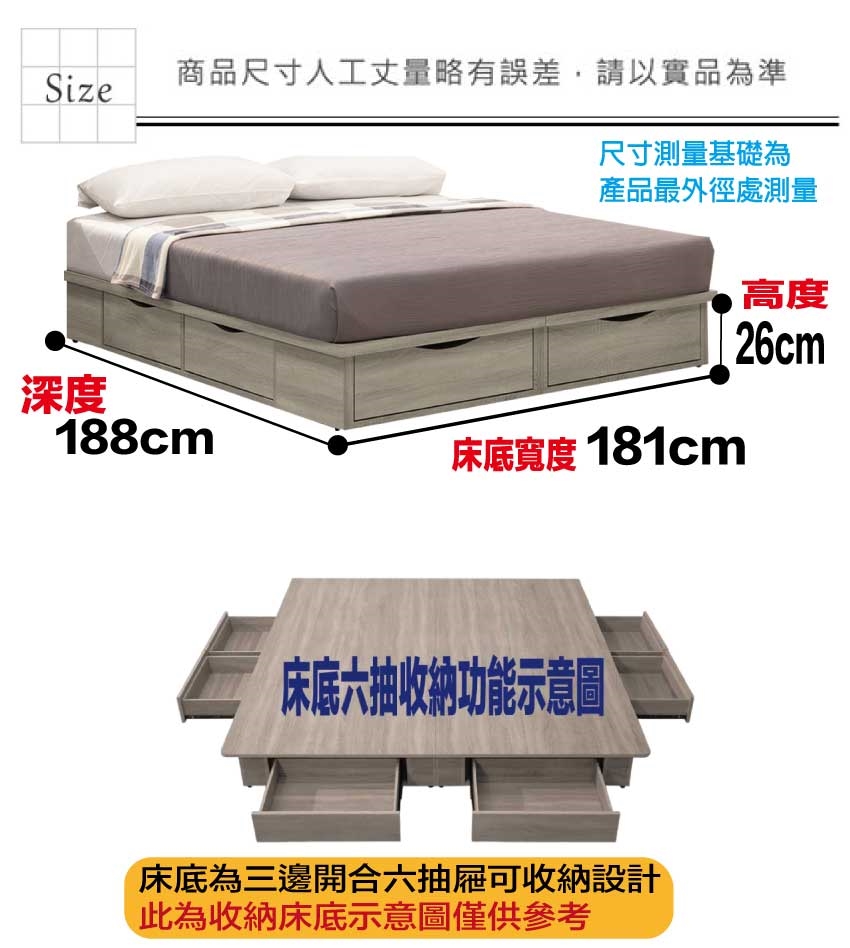 - ◆產品名稱:【綠家居】海珊6尺雙人加大六抽床底座(不含床墊)