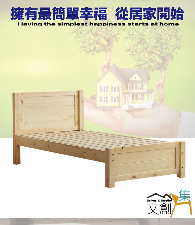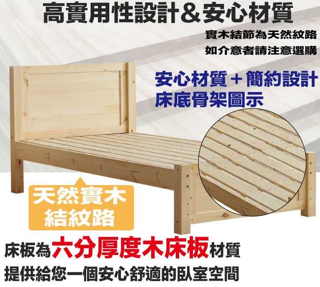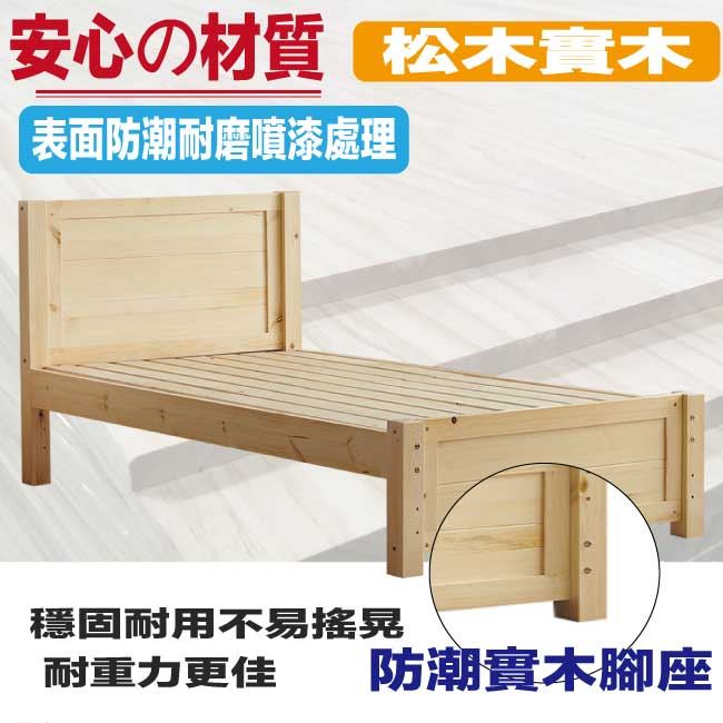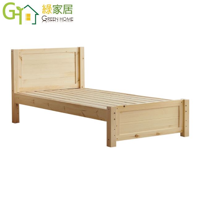 商 品 介 紹 | 【綠家居】富士利3.5尺實木單人床台組合 松木紋色系+現代簡約風格+安心材質製造,整體採用松木實木+六分木床底板+防潮實木腳座等安心材質製造,產品外層採用防潮耐磨噴漆處理,全由專人配送到家,專業安心服務,替你省下更多時間! 【商品特色】 松木紋色系+現代簡約風格+安心材質製造,使用放心+搭配居家更便利 採用松木實木+六分木床底板+防潮實木腳座等安心材質製造 產品外層採用防潮耐磨噴漆處理 此商品不需要DIY組立,此商品為組立後之成品 品質保證、專業設計、貼心服務 全由專人配送到家,專業安心服務,替您省下更多時間