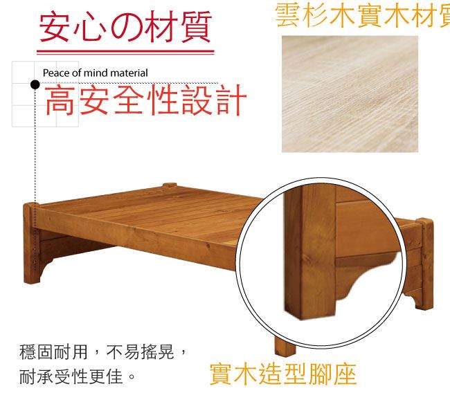 材質 | ◆產品名稱:【綠家居】 維多利 現代3.5尺單人實木床底座 產品尺寸: 組合尺寸:(寬)110.9x(深)210.6x(高)46.8/公分 ◆材質: 材質:雲杉木實木+實木木床板 塗漆:優利坦全包式耐磨噴漆處理 |