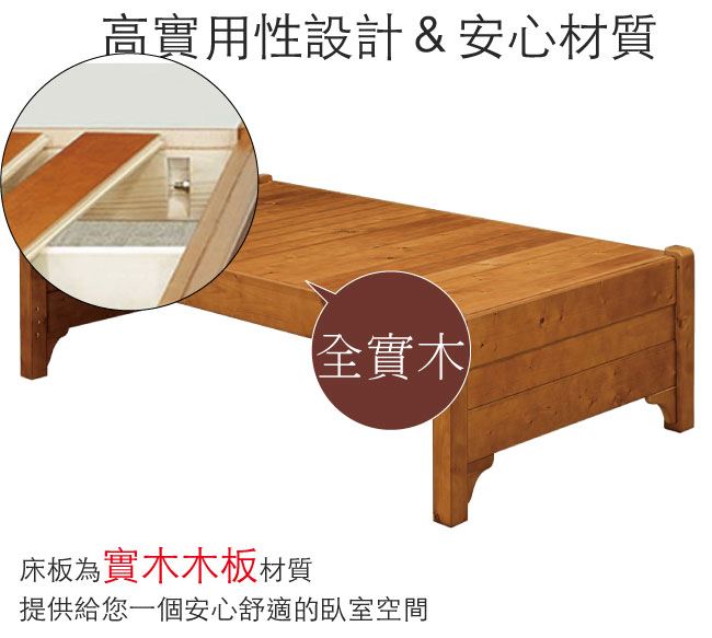 商品介紹 | 【綠家居】維多利 現代3.5尺單人實木床底座 樟木紋色系+現代簡約風格+安心材質製造,整體採用雲杉木實木+實木木床板等安心材質製造,外層採用優利坦全包式耐磨噴漆處理,全由專人配送到家,專業安心服務,替你省下更多時間! 【商品特色】 樟木紋色系+現代簡約風格+安心材質製造,使用放心+搭配居家更便利 採用雲杉木實木+實木木床板等安心材質製造 此商品不需要DIY組立,此商品為組立後之成品 品質保證、專業設計、貼心服務 全由專人配送到家,專業安心服務,替您省下更多時間 |