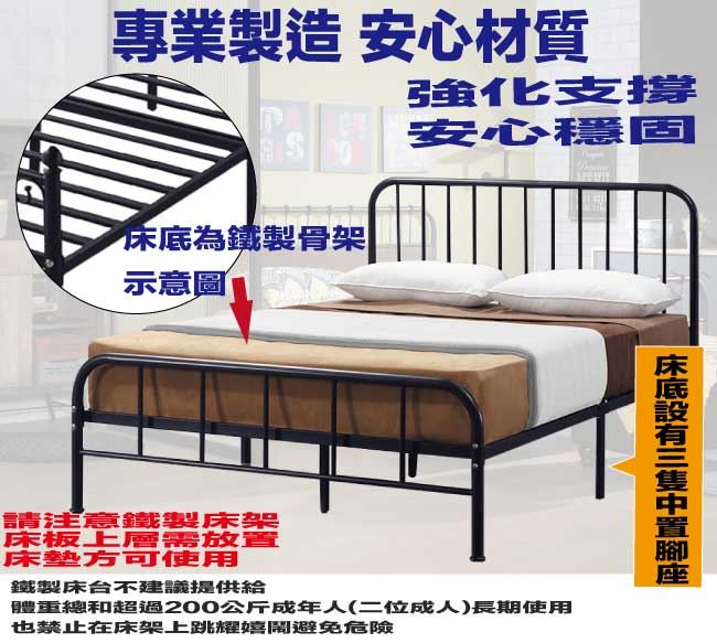 材質 | ◆產品名稱:【綠家居】希琳5尺雙人鐵製床台組合(二色可選) 床台組合尺寸:(寬)151x(深)203x(高)102/公分 ◆材質: 材質:防鏽鐵製床架&骨架+鐵製圓形腳座 噴漆:外層防鏽烤漆處理 |