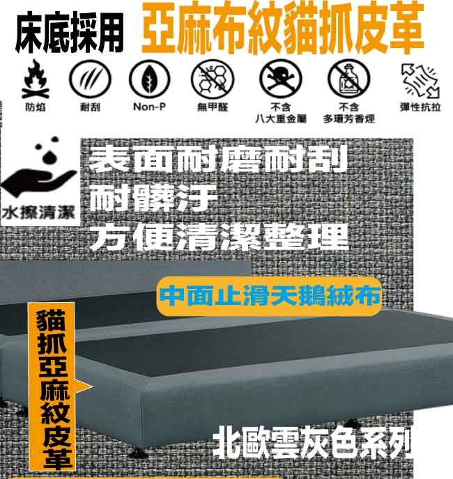 【綠家居】巴雅利6尺雙人加大貓抓布紋皮革床底