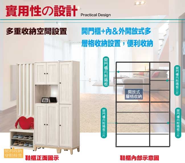 開門櫃+穿鞋椅凳+內&外層格