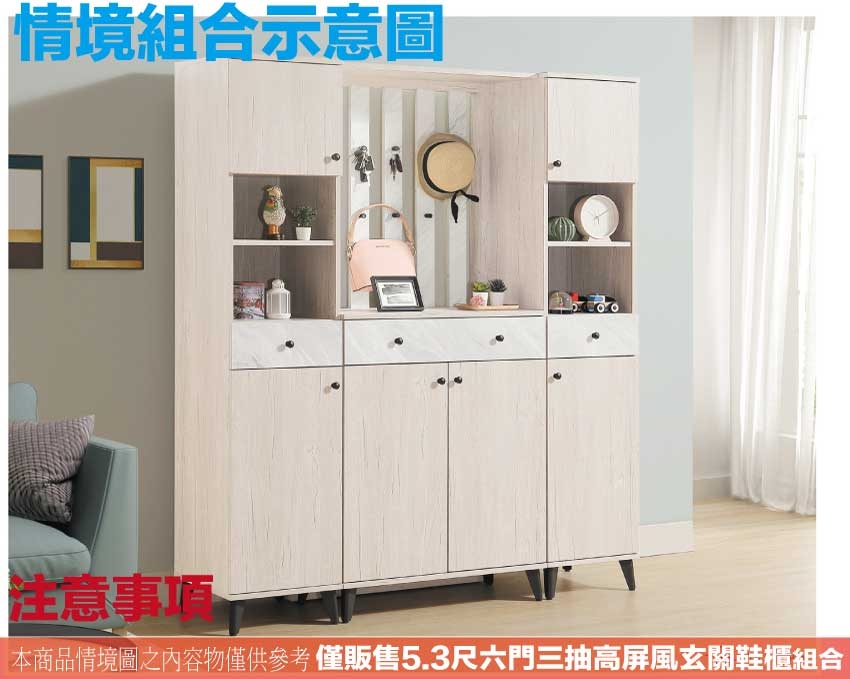 - ◆產品名稱:【綠家居】高利雙色5.3尺六門三抽高屏風玄關鞋櫃組合