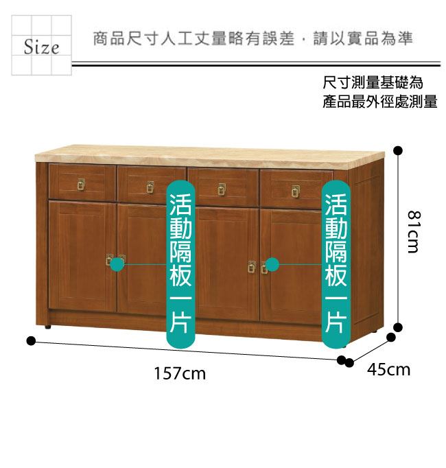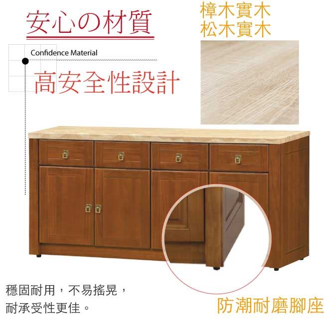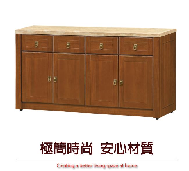 材質 | ◆產品名稱: 【綠家居】布塞爾 樟木紋5.2尺雲紋石面實木餐櫃 尺寸:(寬)157x(深)45x(高)81/公分 ◆材質: 材質:樟木實木+松木實木+防蛀木心板+防潮耐磨腳座+五金滑軌結構+2cm雲紋石面板+防夾手緩衝門片五金 噴漆:防潮耐磨噴漆處理