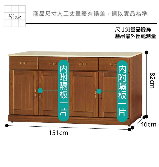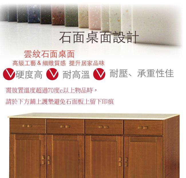 材質 | ◆產品名稱: 【綠家居】塞依爾 樟木紋5尺雲紋石面實木餐櫃 尺寸:(寬)151x(深)46x(高)82/公分 ◆材質: 材質:松木實木+防蛀木心板+防潮耐磨腳座+五金滑軌結構+12mm雲紋石面板+防夾手緩衝門片五金 噴漆:防潮耐磨噴漆處理