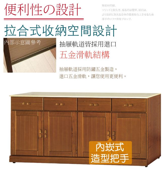 商品介紹 | 【綠家居】塞依爾 樟木紋5尺雲紋石面實木餐 樟木紋色系+現代簡約風格+安心材質製造,整體採用松木實木+防蛀木心板+防潮耐磨腳座+五金滑軌結構+12mm雲紋石面板+防夾手緩衝門片五金等安心材質製造,產品外層採用防潮耐磨噴漆處理搭配採用開門櫃+四抽屜+開放式收納等收納空間設計,全由專人配送到家,專業安心服務,替你省下更多時間! 【商品特色】 樟木紋色系+現代簡約風格+安心材質製造,使用放心+搭配居家更便利 採用松木實木+防蛀木心板+防潮耐磨腳座+五金滑軌結構+12mm雲紋石面板+防夾手緩衝門片五金等安心材質製造 產品外層採用防潮耐磨噴漆處理 搭配採用開門櫃+四抽屜+開放式收納等收納空間設計 此商品不需要DIY組立,此商品為組立後之成品 品質保證、專業設計、貼心服務 全由專人配送到家,專業安心服務,替您省下更多時間 |