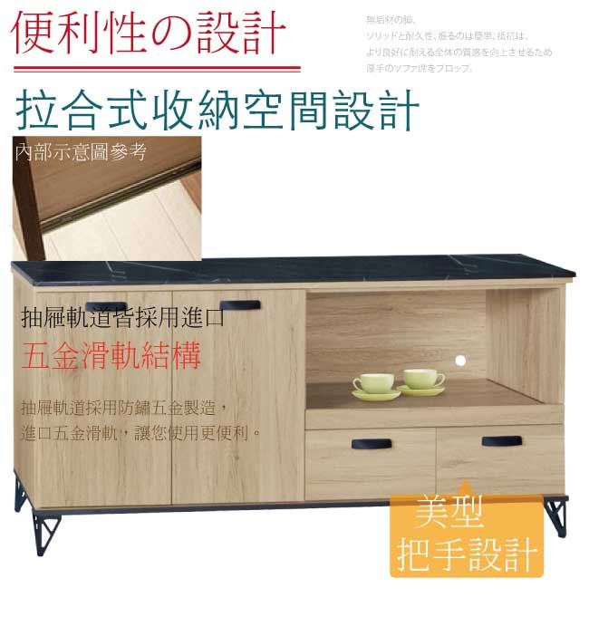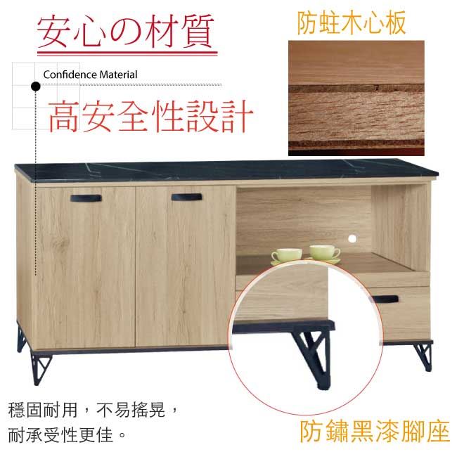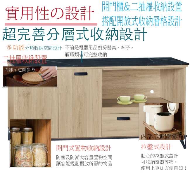 【綠家居】哈立爾 橡木紋5尺拉盤雲紋石面餐櫃