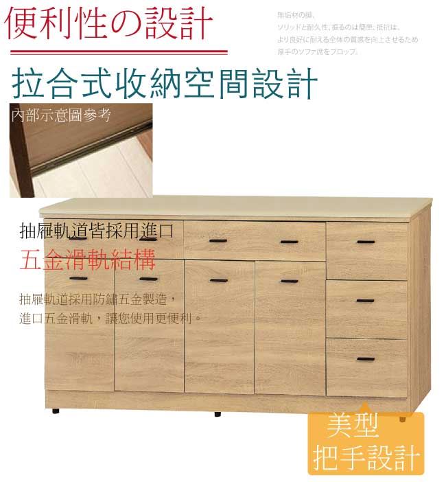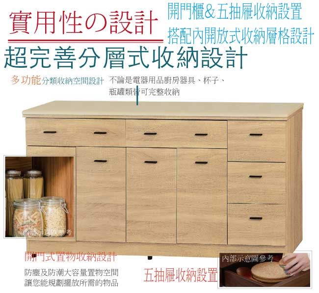【綠家居】巴哈爾 五抽6尺木紋雲紋石面餐櫃