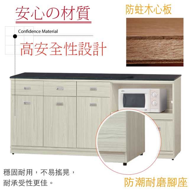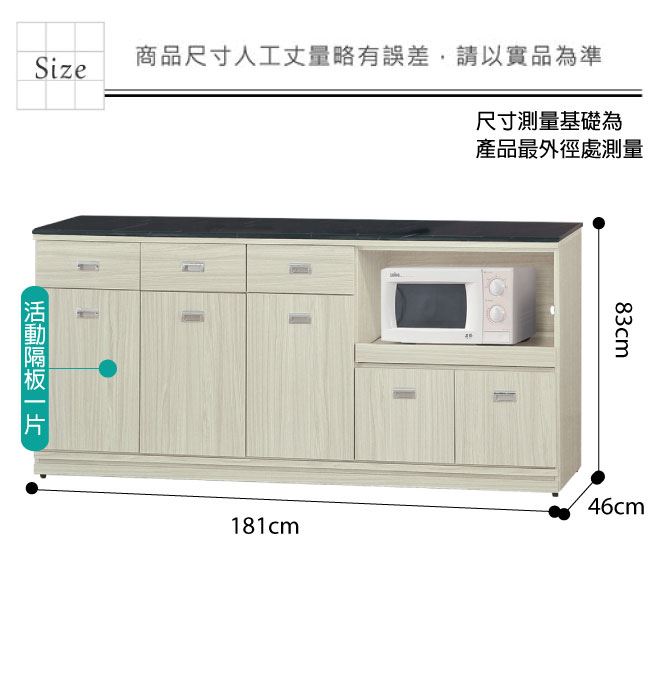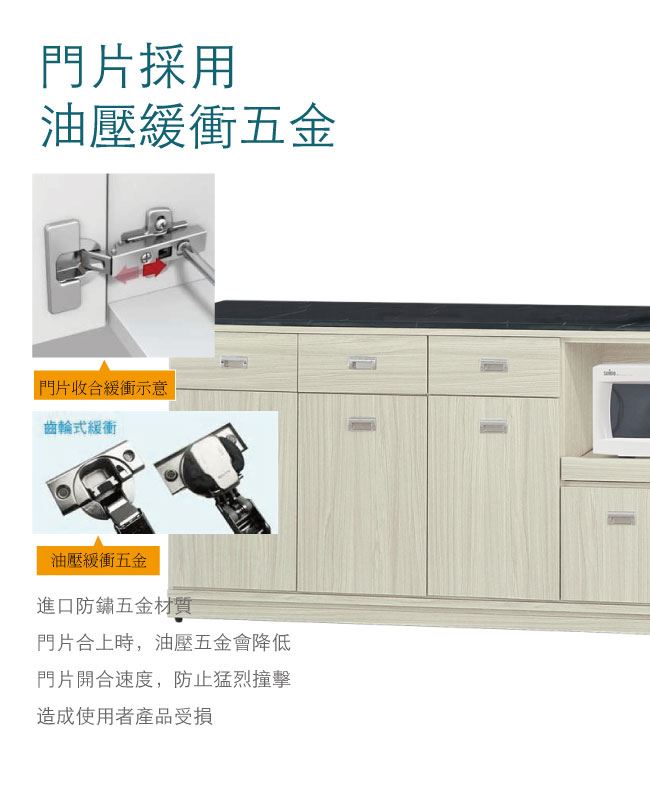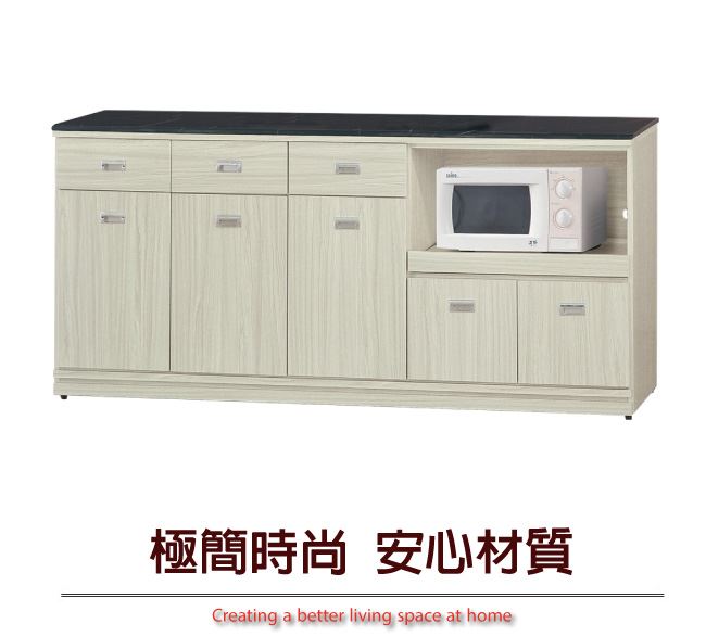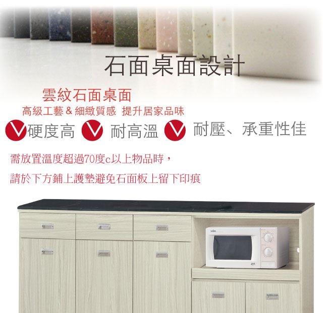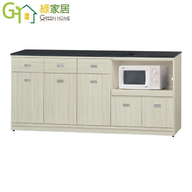 材質 | ◆產品名稱: 【綠家居】喬爾依 雪松木紋6尺拉盤雲紋石面餐櫃 尺寸:(寬)181(深)46x(高)83/公分 ◆材質: 材質:防蛀木心板+防潮耐磨腳座+五金滑軌結構+12mm雲紋石面板+防夾手緩衝門片五金 噴漆:防潮耐磨噴漆處理