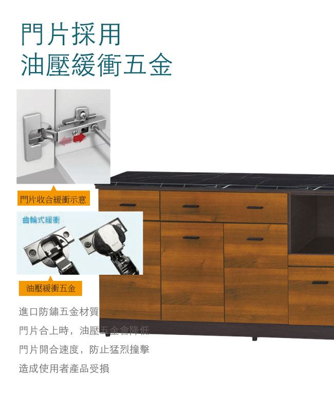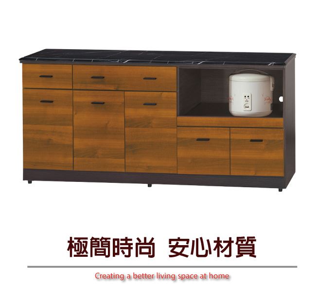 材質 | ◆產品名稱: 【綠家居】布爾依 時尚6尺拉盤雲紋石面餐櫃(二色可選) 尺寸:(寬)181(深)46x(高)83/公分 ◆材質: 材質:防蛀木心板+防潮耐磨腳座+五金滑軌結構+12mm雲紋石面板+防夾手緩衝門片五金 噴漆:防潮耐磨&亮面噴漆處理