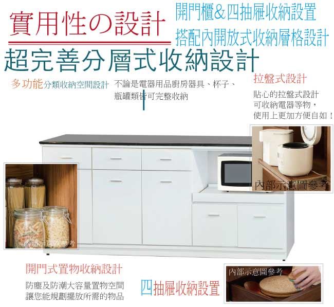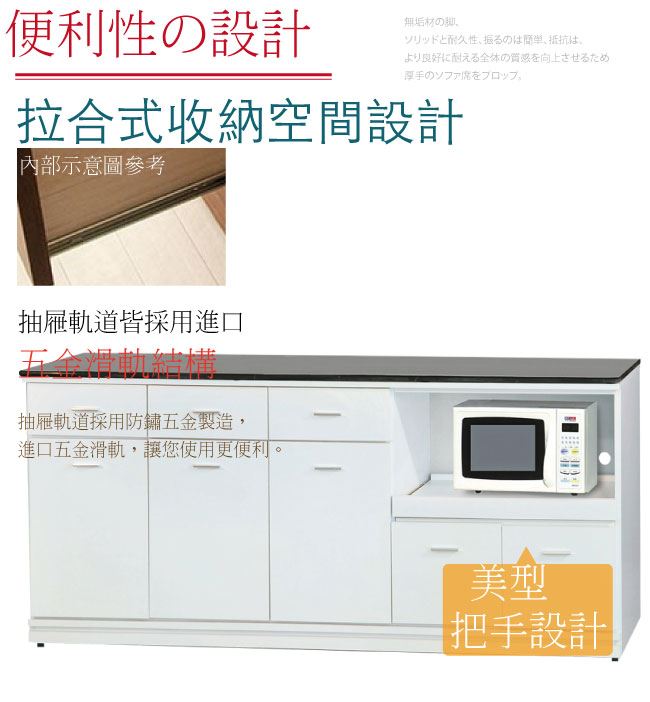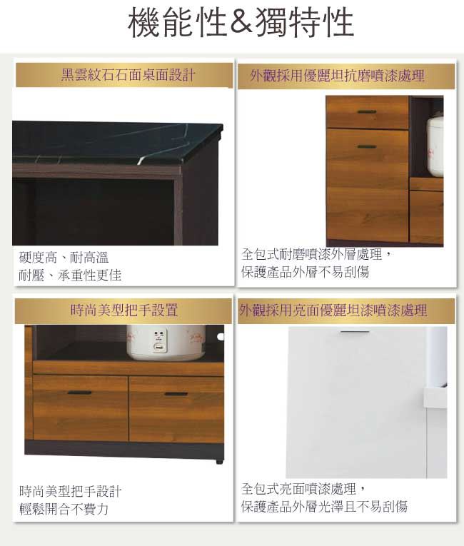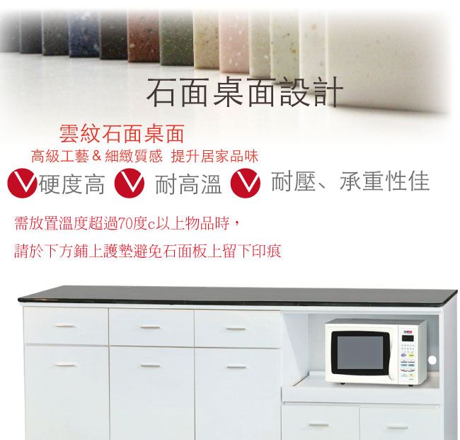 商品介紹 | 【綠家居】布爾依 時尚6尺拉盤雲紋石面餐櫃(二色可選) 二色可選+現代簡約風格+安心材質製造,整體採用防蛀木心板+防潮耐磨腳座+五金滑軌結構+12mm雲紋石面板+防夾手緩衝門片五金等安心材質製造,產品外層採用防潮耐磨&亮面噴漆處理搭配採用開門櫃+四抽屜+拉合式拉盤層架+開放式收納等收納空間設計,全由專人配送到家,專業安心服務,替你省下更多時間! 【商品特色】 二色可選+現代簡約風格+安心材質製造,使用放心+搭配居家更便利 採用防蛀木心板+防潮耐磨腳座+五金滑軌結構+12mm雲紋石面板+防夾手緩衝門片五金等安心材質製造 產品外層採用防潮耐磨&亮面噴漆處理 搭配採用開門櫃+四抽屜+拉合式拉盤層架+開放式收納等收納空間設計 此商品不需要DIY組立,此商品為組立後之成品 品質保證、專業設計、貼心服務 全由專人配送到家,專業安心服務,替您省下更多時間 |