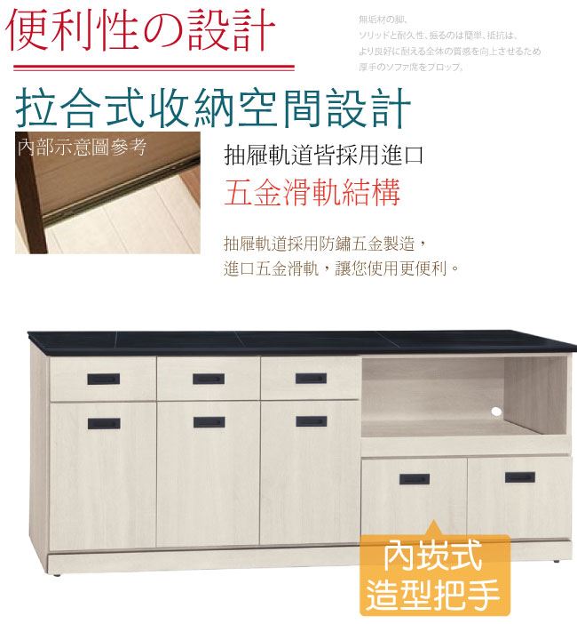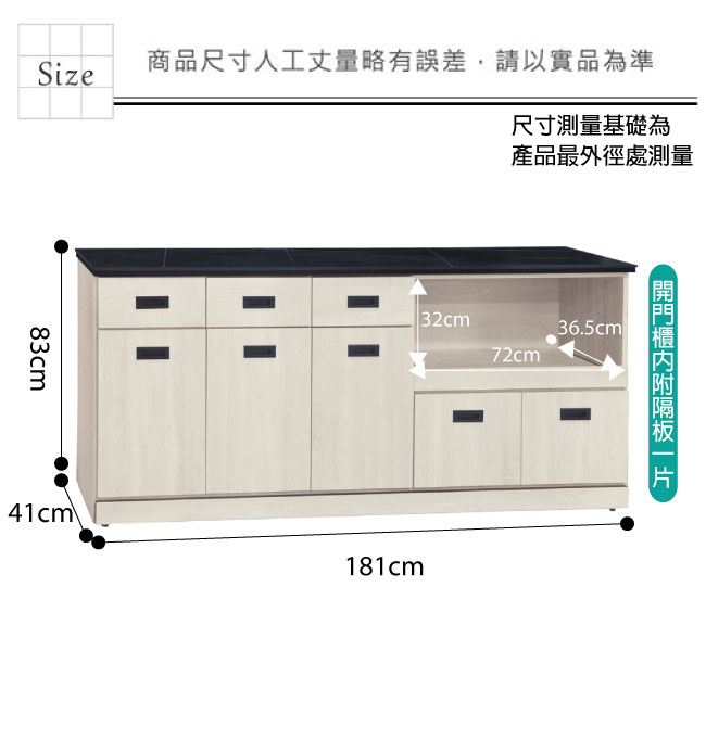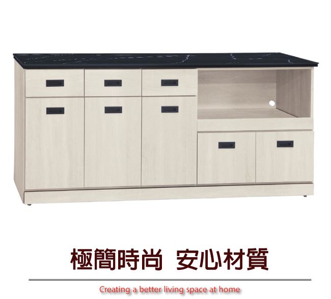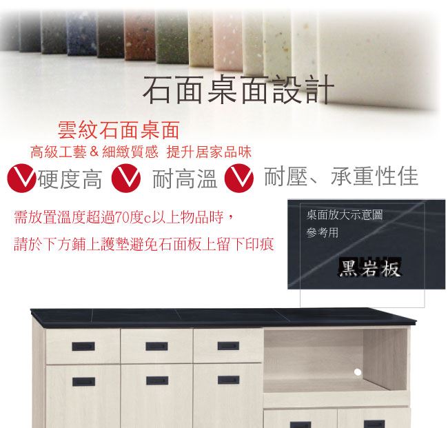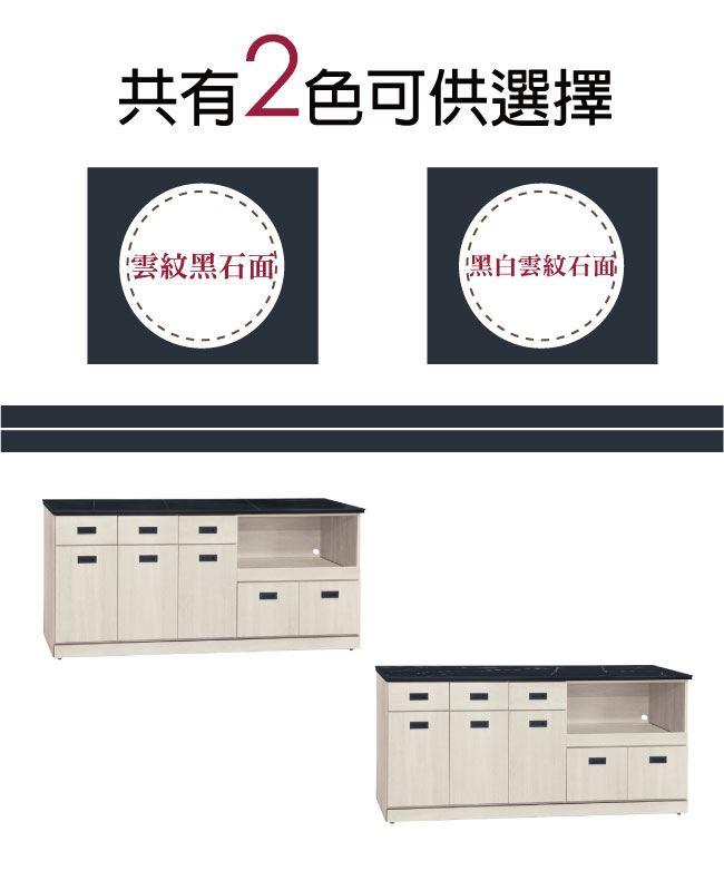 材質 | ◆產品名稱: 【綠家居】安博 淺橡6尺雲紋石&岩板餐櫃(二色石面可選) 尺寸:(寬)181x(深)46x(高)83/公分 ◆材質: 材質:防蛀木心板+防潮耐磨腳座+五金滑軌結構+12mm黑白雲紋石面板&黑岩板面板+防夾手緩衝門片五金 噴漆:防潮耐磨噴漆處理