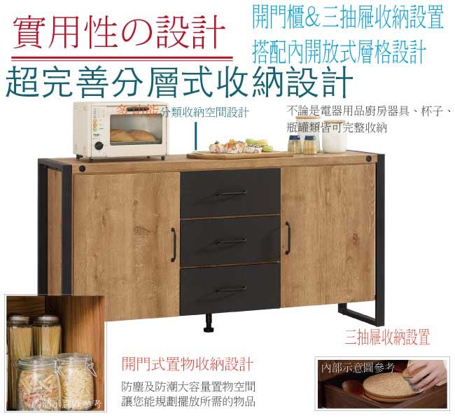 【綠家居】馬柏 雙色5.1尺二門三抽餐櫃/收納櫃