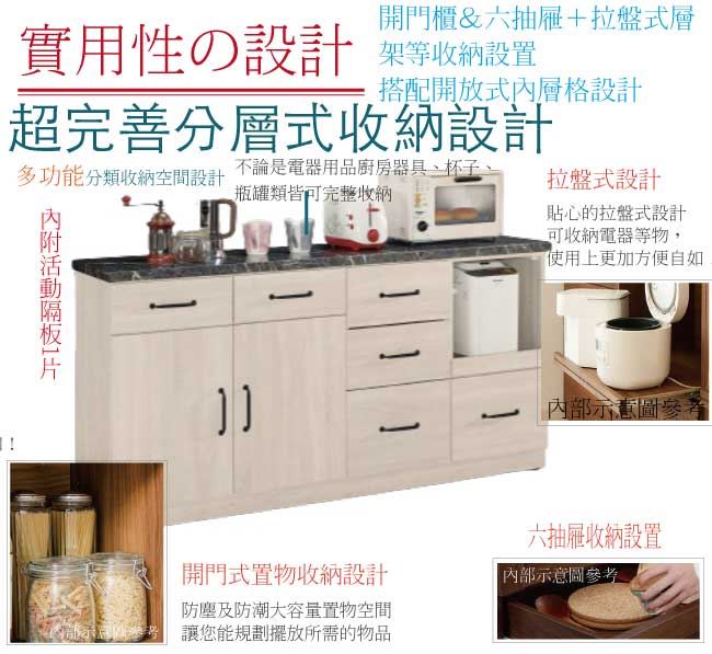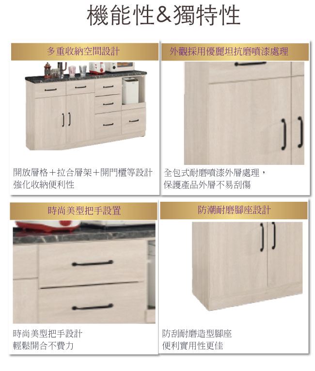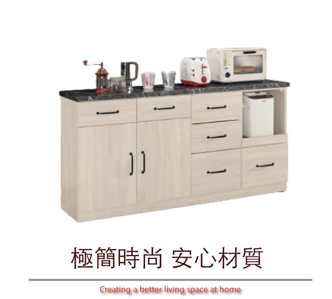商品介紹 | 【綠家居】卡提斯 淺橡5.2尺雲紋石面餐櫃 淺橡木紋色系+現代簡約風格+安心材質製造,整體採用防蛀木心板+五金滑軌結構+防潮耐磨腳座+2cm雲紋石面桌面板+防夾手緩衝門片五金等安心材質製造,外層採用優利坦全包式耐磨噴漆處理搭配開門櫃+六抽屜+拉合式層架+內&外開放式層格等收納設計,全由專人配送到家,專業安心服務,替你省下更多時間! 【商品特色】 淺橡木紋色系+現代簡約風格+安心材質製造,使用放心+搭配居家更便利 採用防蛀木心板+五金滑軌結構+防潮耐磨腳座+2cm雲紋石面桌面板+防夾手緩衝門片五金等安心材質製造 開門櫃+六抽屜+拉合式層架+內&外開放式層格等收納設計 此商品不需要DIY組立,此商品為組立後之成品 品質保證、專業設計、貼心服務 全由專人配送到家,專業安心服務,替您省下更多時間 |