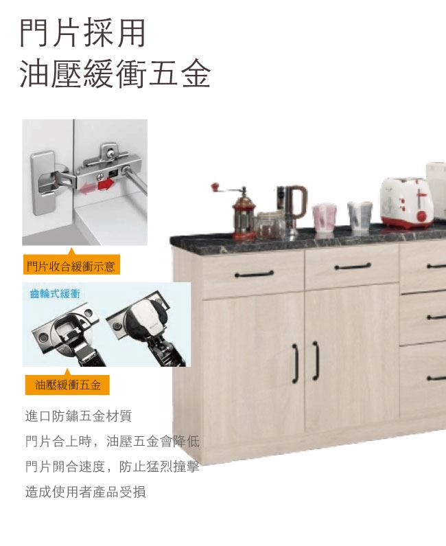 - 防夾手緩衝五金+2cm雲紋石面