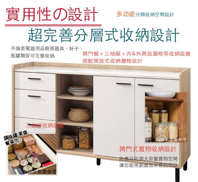 - 開門櫃+三抽屜+內&外開放式