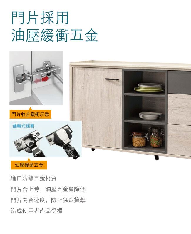- 五金滑軌結構+防夾手緩衝五金