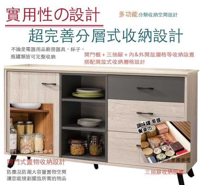 【綠家居】賈維 雙色5尺雲紋石面餐櫃/收納櫃